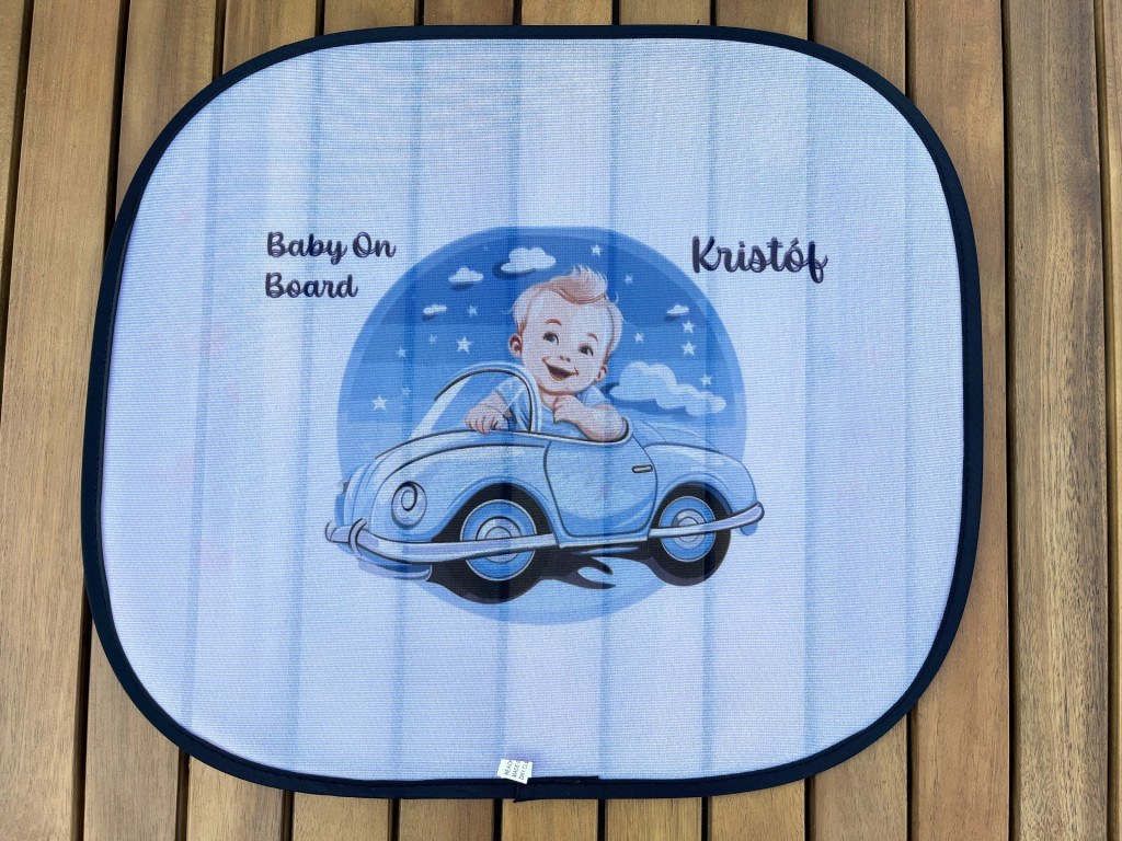 Napellenző autóba. Elérhető lányos színekkel is. Bármilyen kép és felirat kérhető.