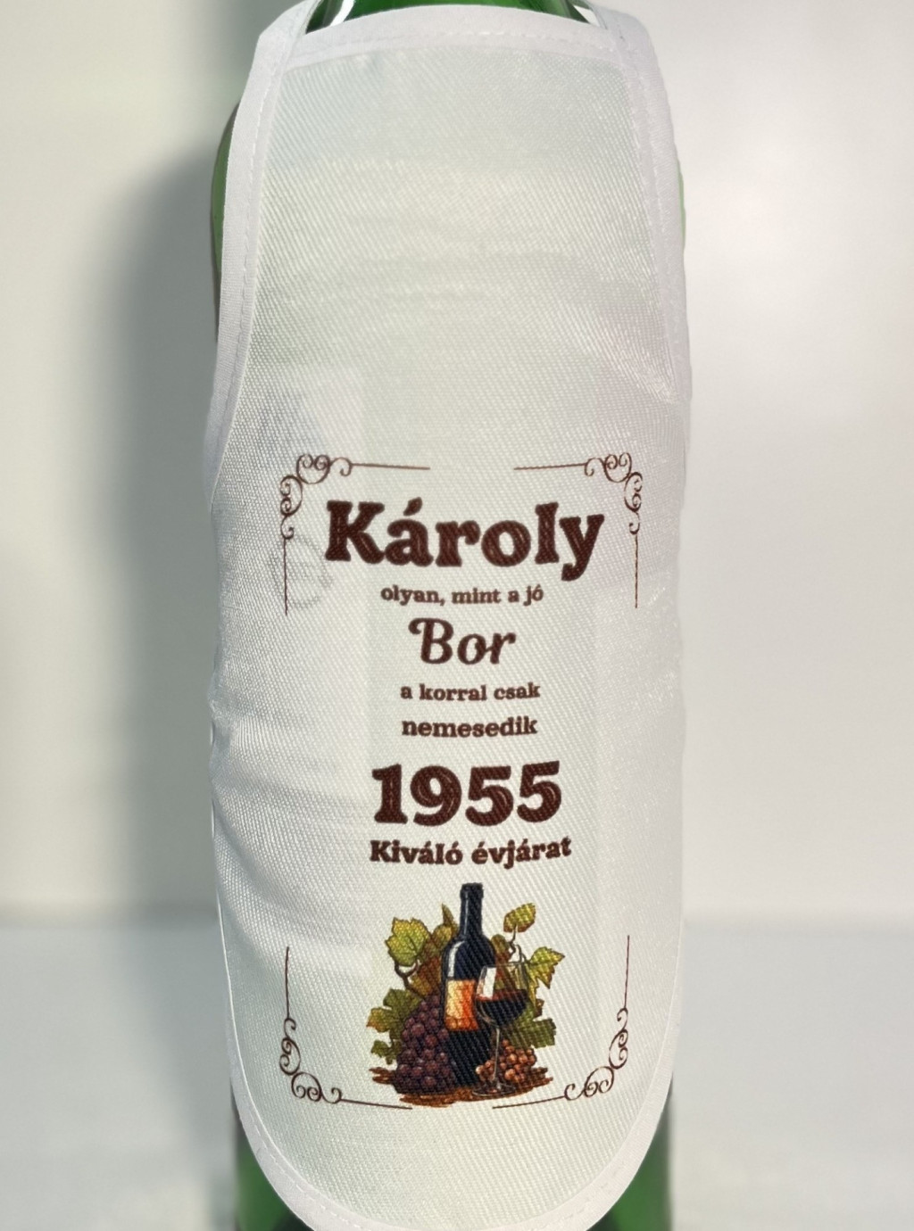 Igazi ajándék borkedvelőknek ez a boros üvegre köthető kötény.