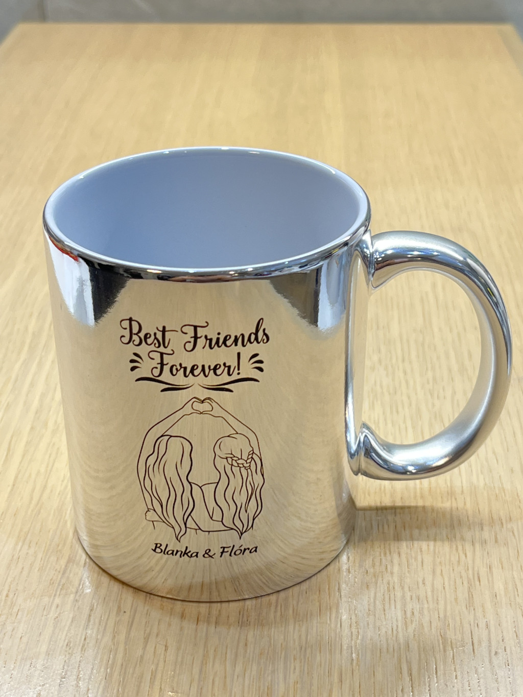 Fémhatású kerámia bögre, saját képpel és felirattal.